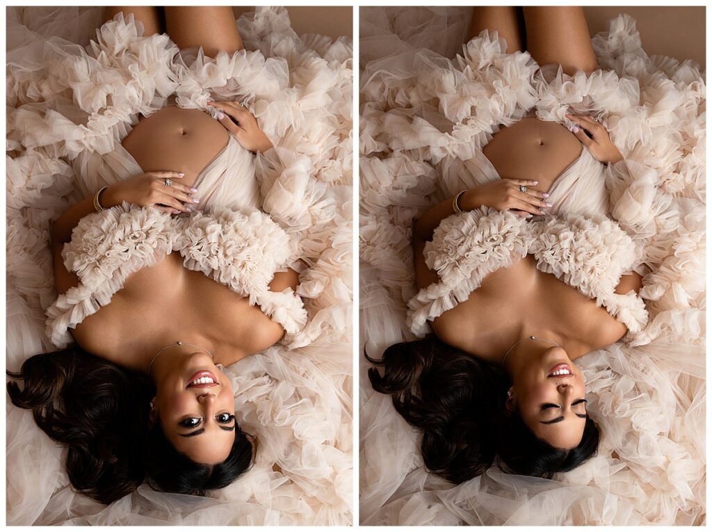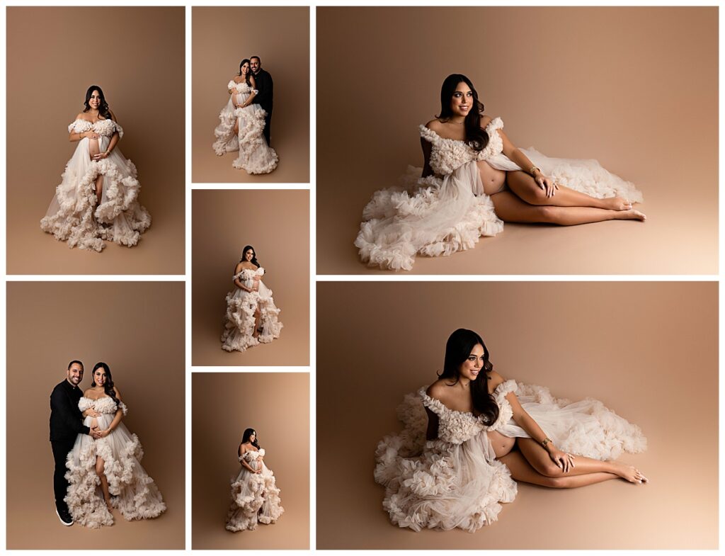 Chaque future maman est différente. C’est pourquoi chaque séance est pensée pour refléter votre personnalité et vos envies. Vous pouvez choisir des portraits élégants en robe vaporeuse ou des images plus simples et naturelles. De plus, le studio propose une sélection de robes et d’accessoires pour explorer différents looks, du romantique au glamour.